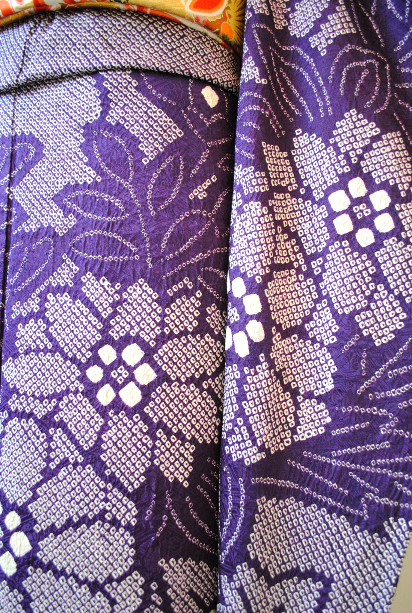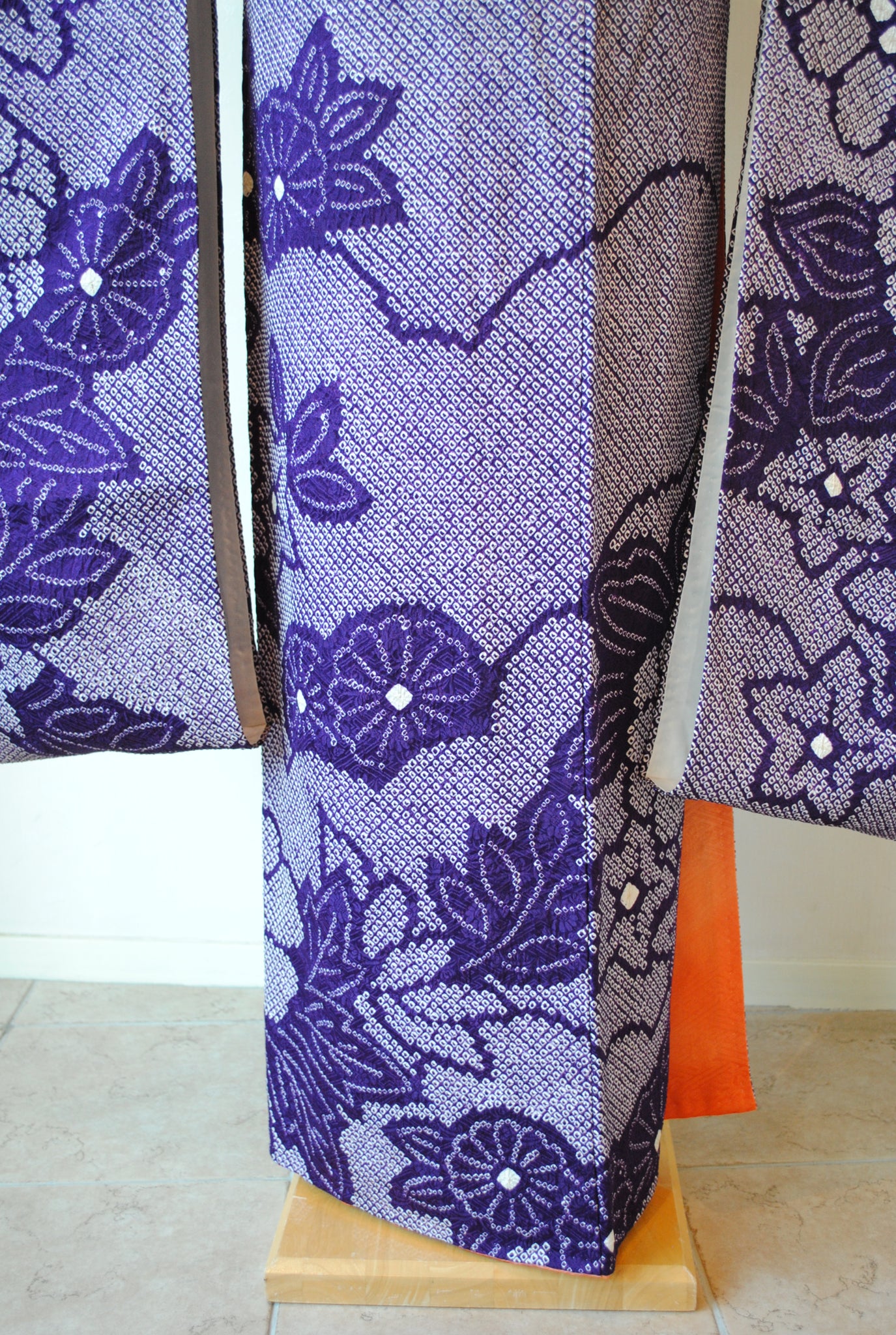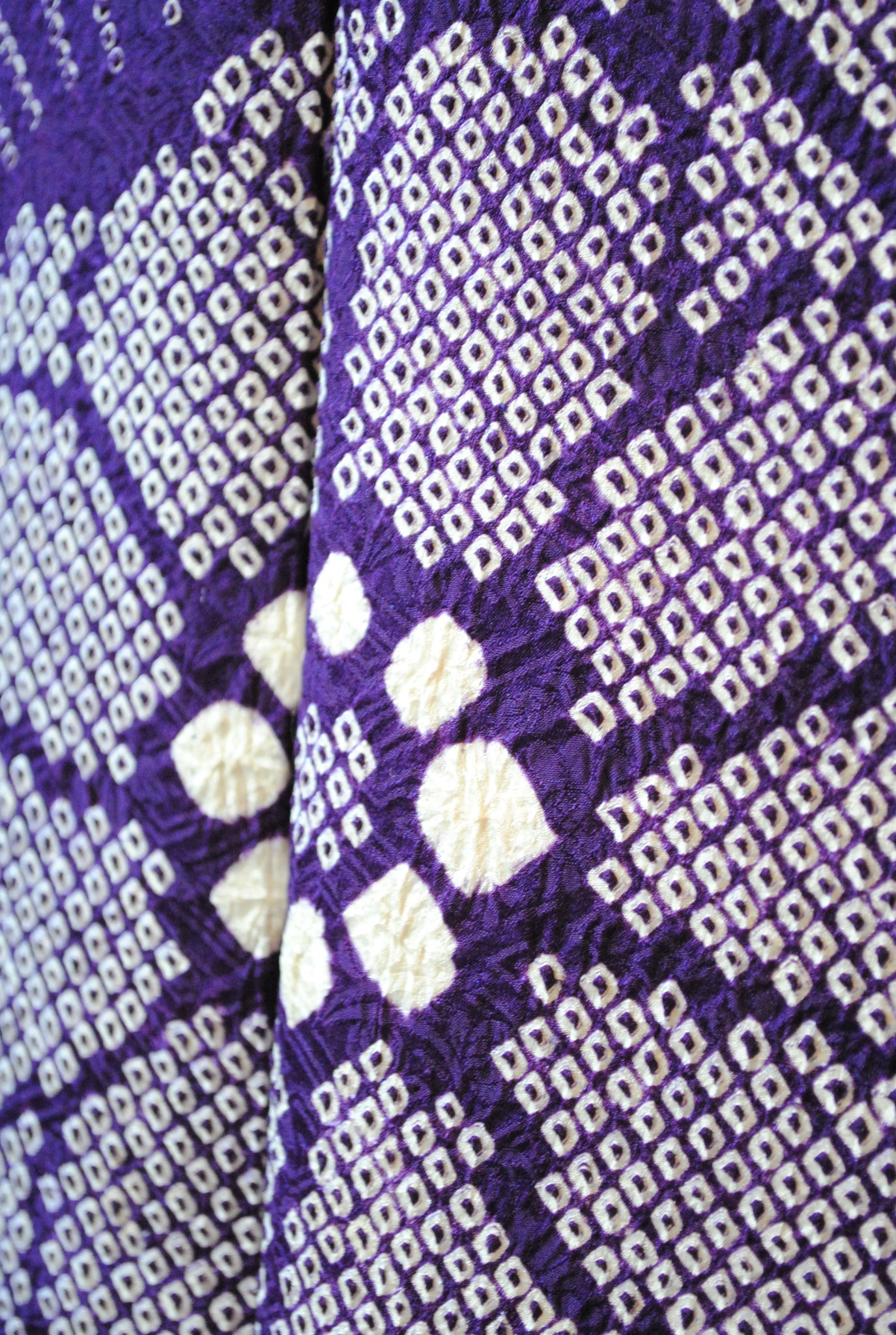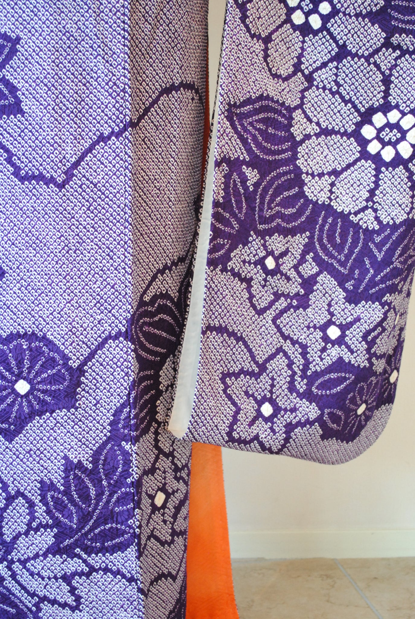 一面を覆う総絞りに、花文様が浮かび上がる深紫の振袖。