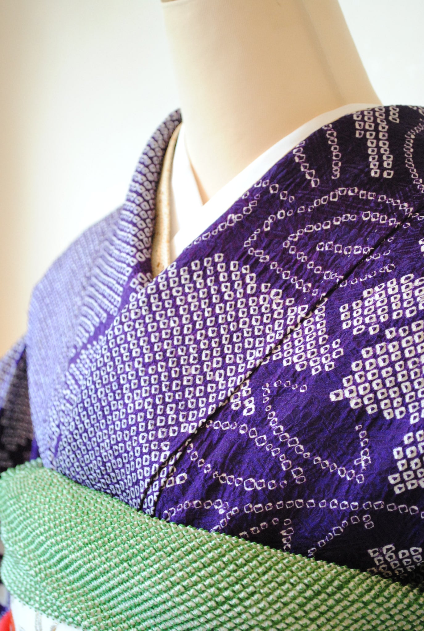 総絞りは高度な技術と膨大な時間を要するため、今ではほとんど新たに作られることのないため希少なもの。趣あるヴィンテージならではの特別感を纏わせてくれます。