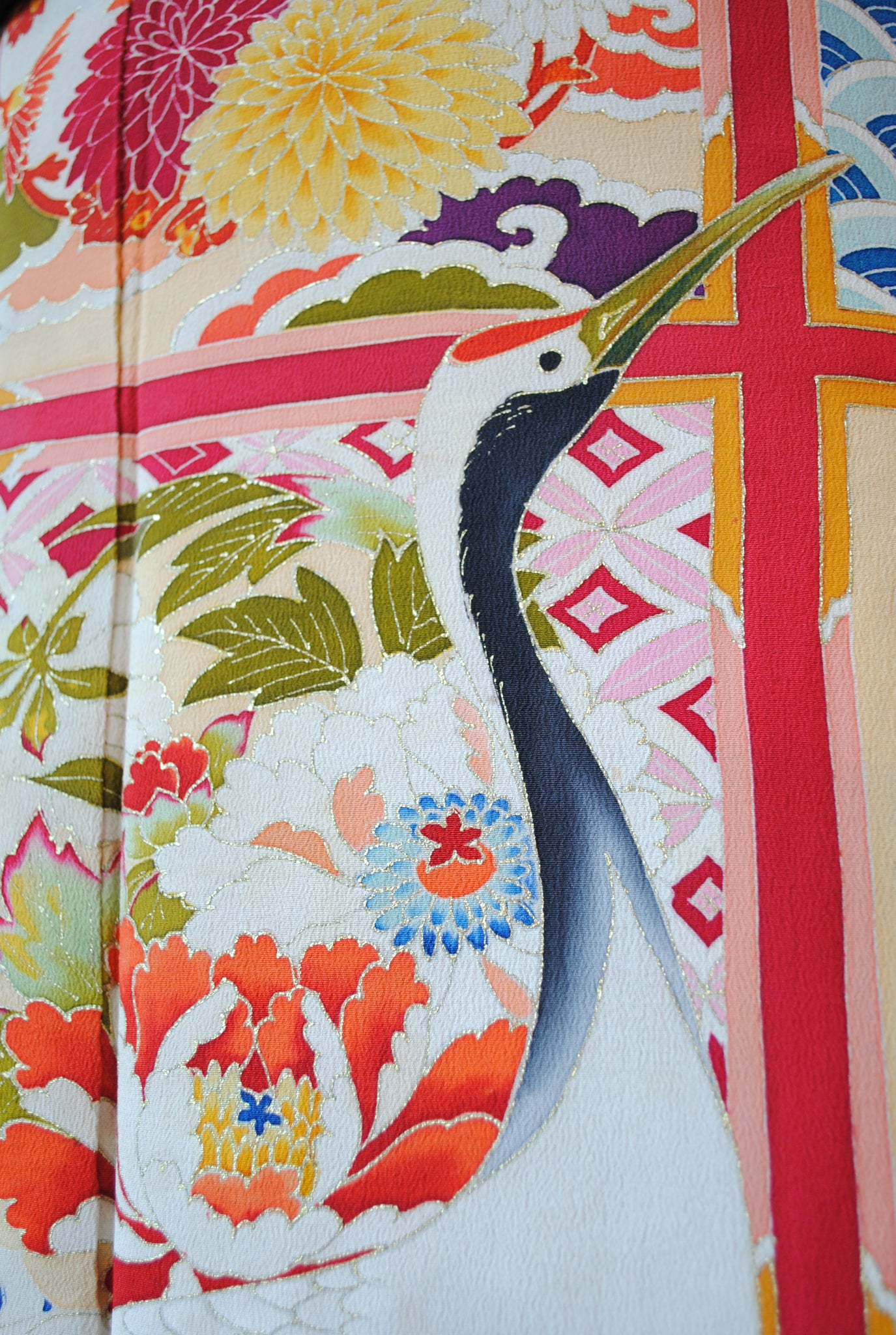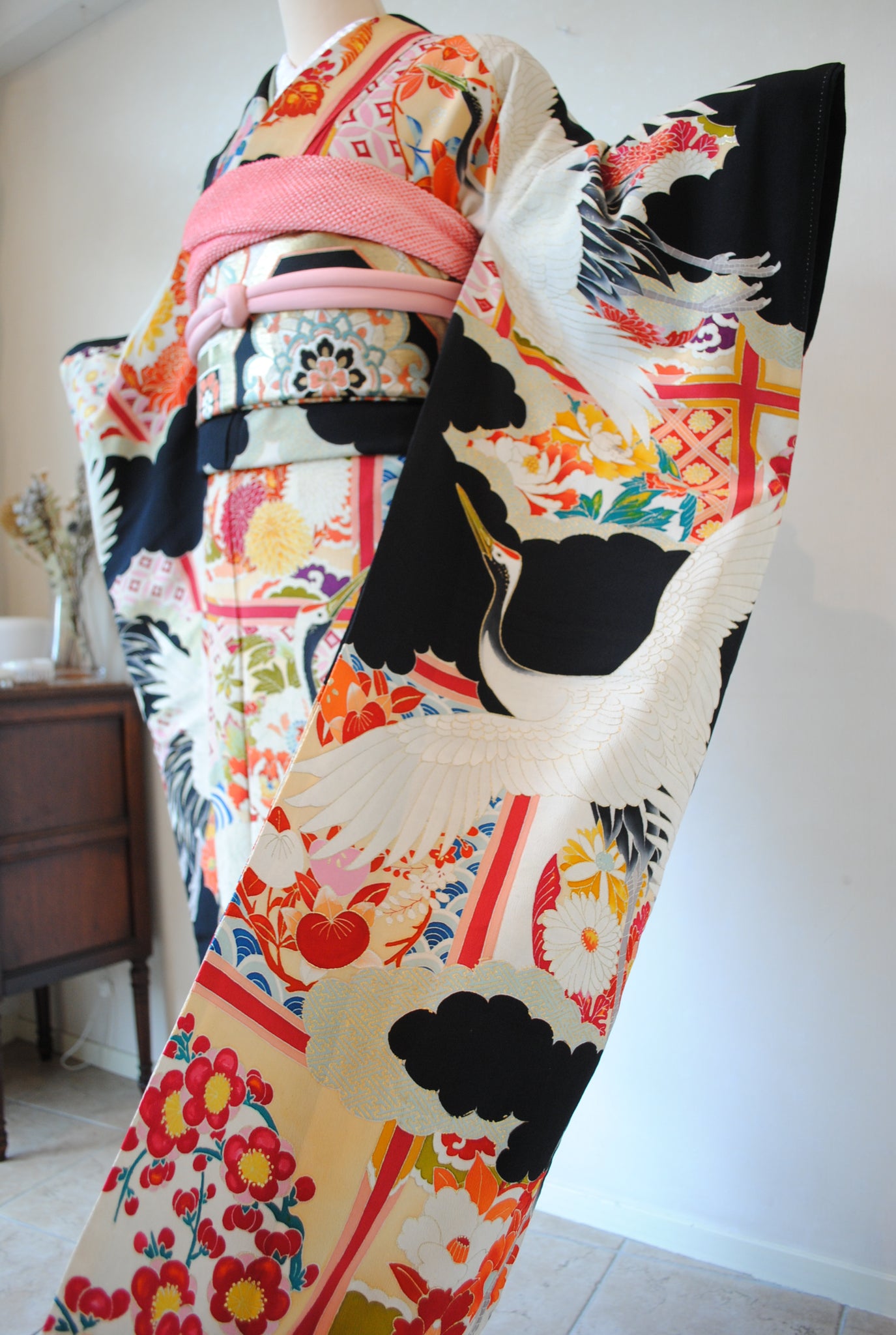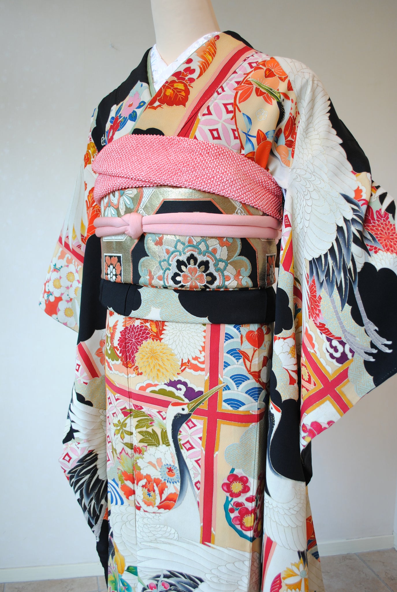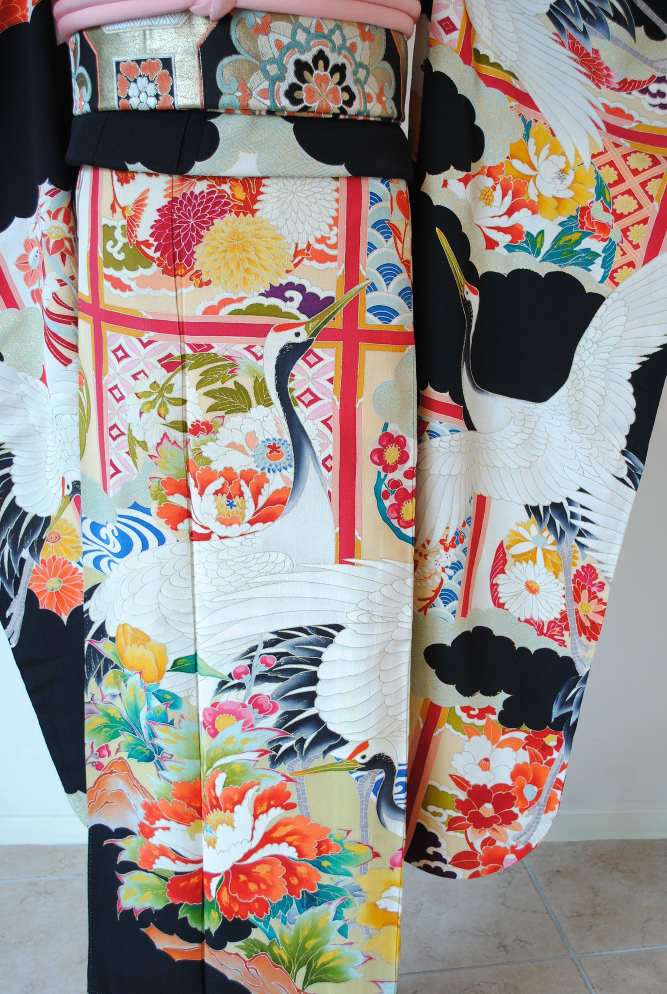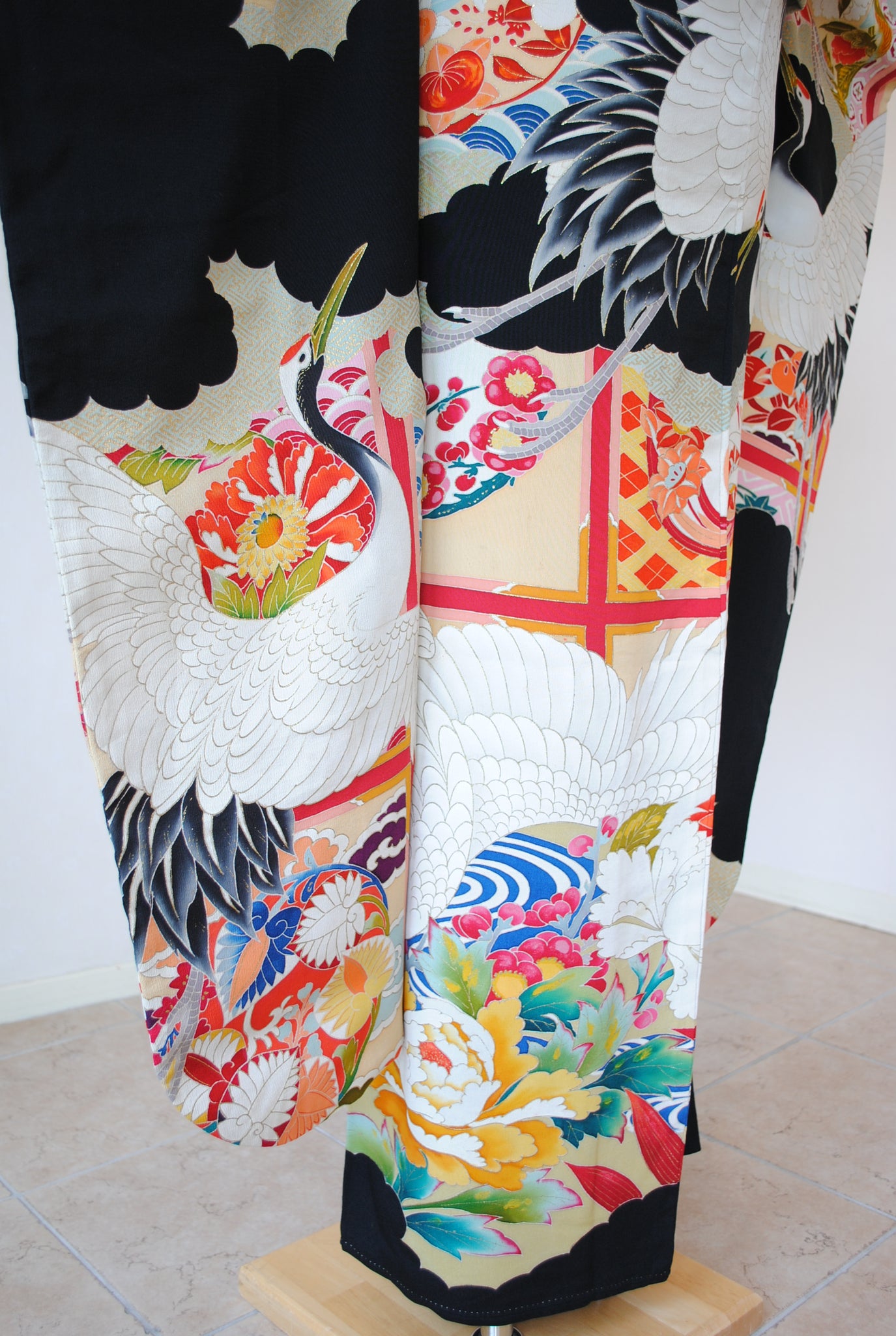 長寿の象徴である鶴や、四季を彩る花々が躍動感たっぷりに描かれ、特別な日をますます輝かせてくれます。