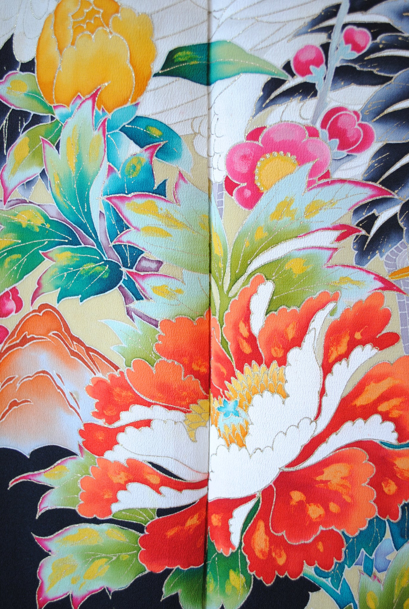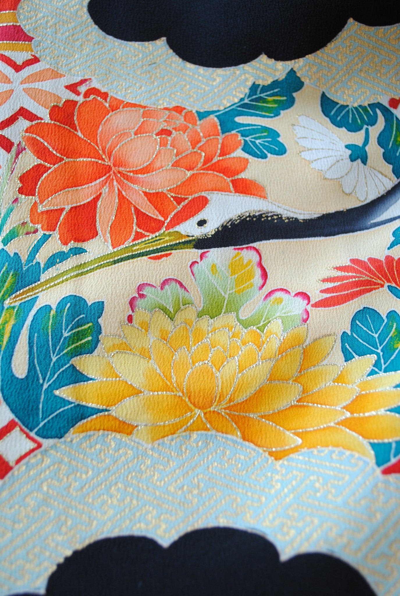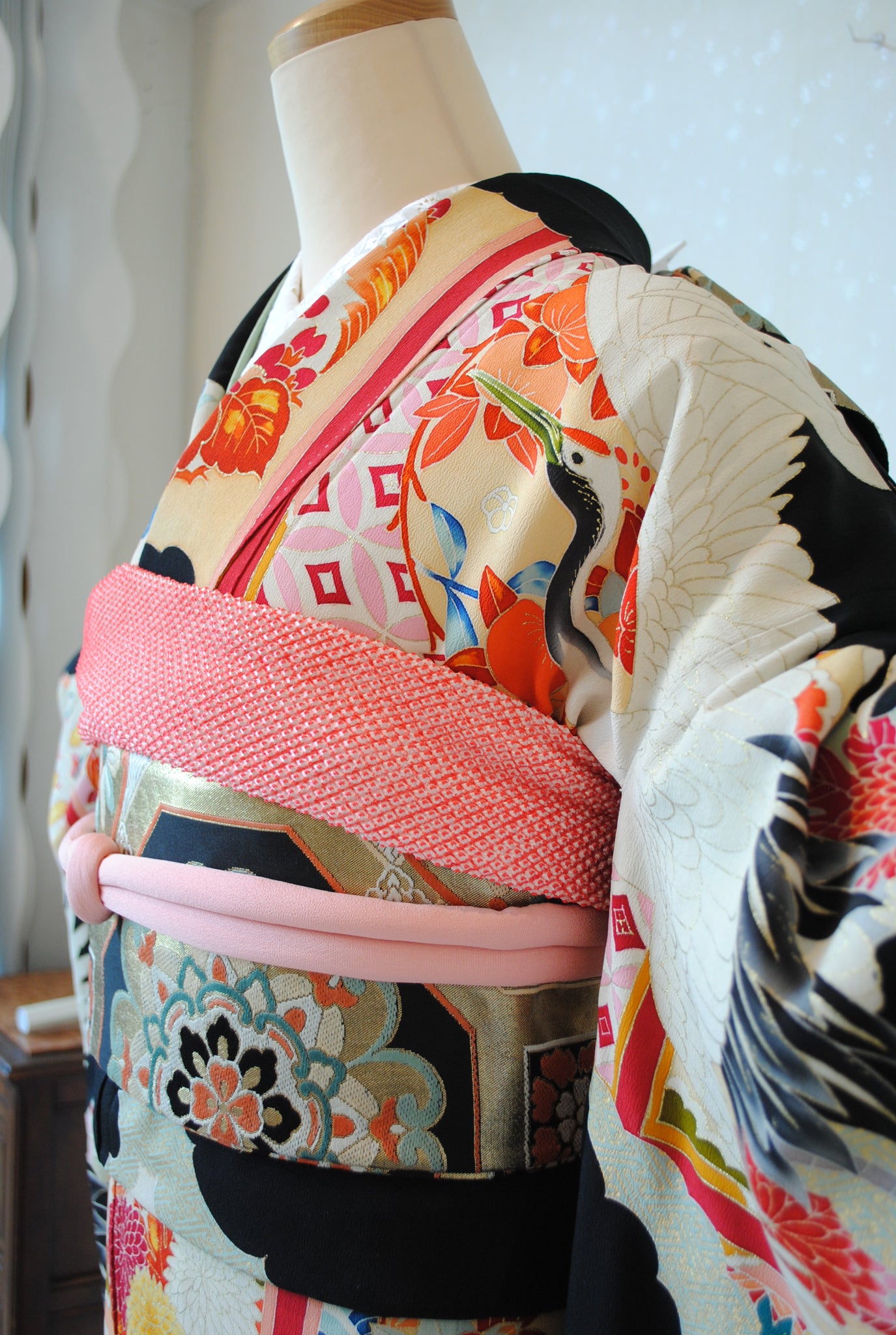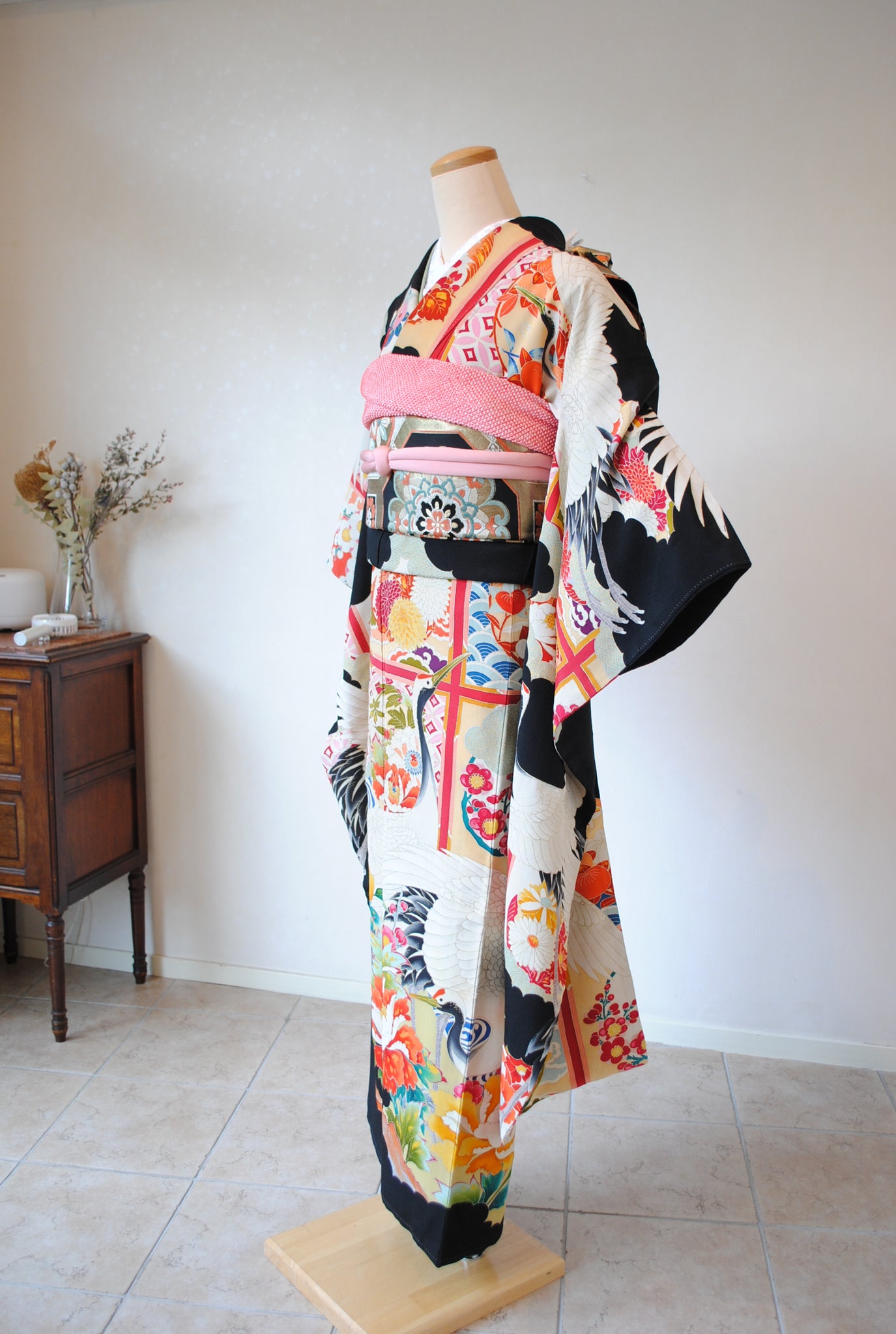 長寿の象徴である鶴や、四季を彩る花々が躍動感たっぷりに描かれ、特別な日をますます輝かせてくれます。