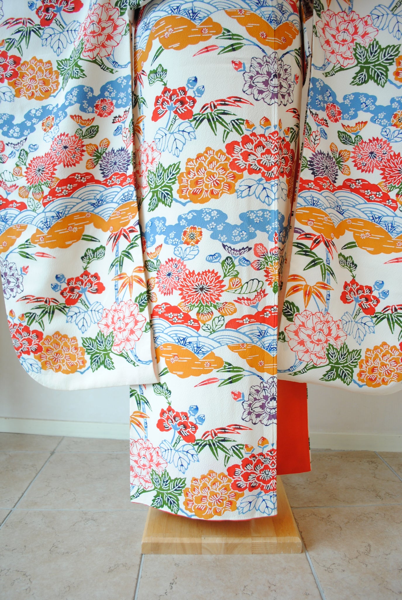 No.116 吉祥花に雲波文様紅型振袖