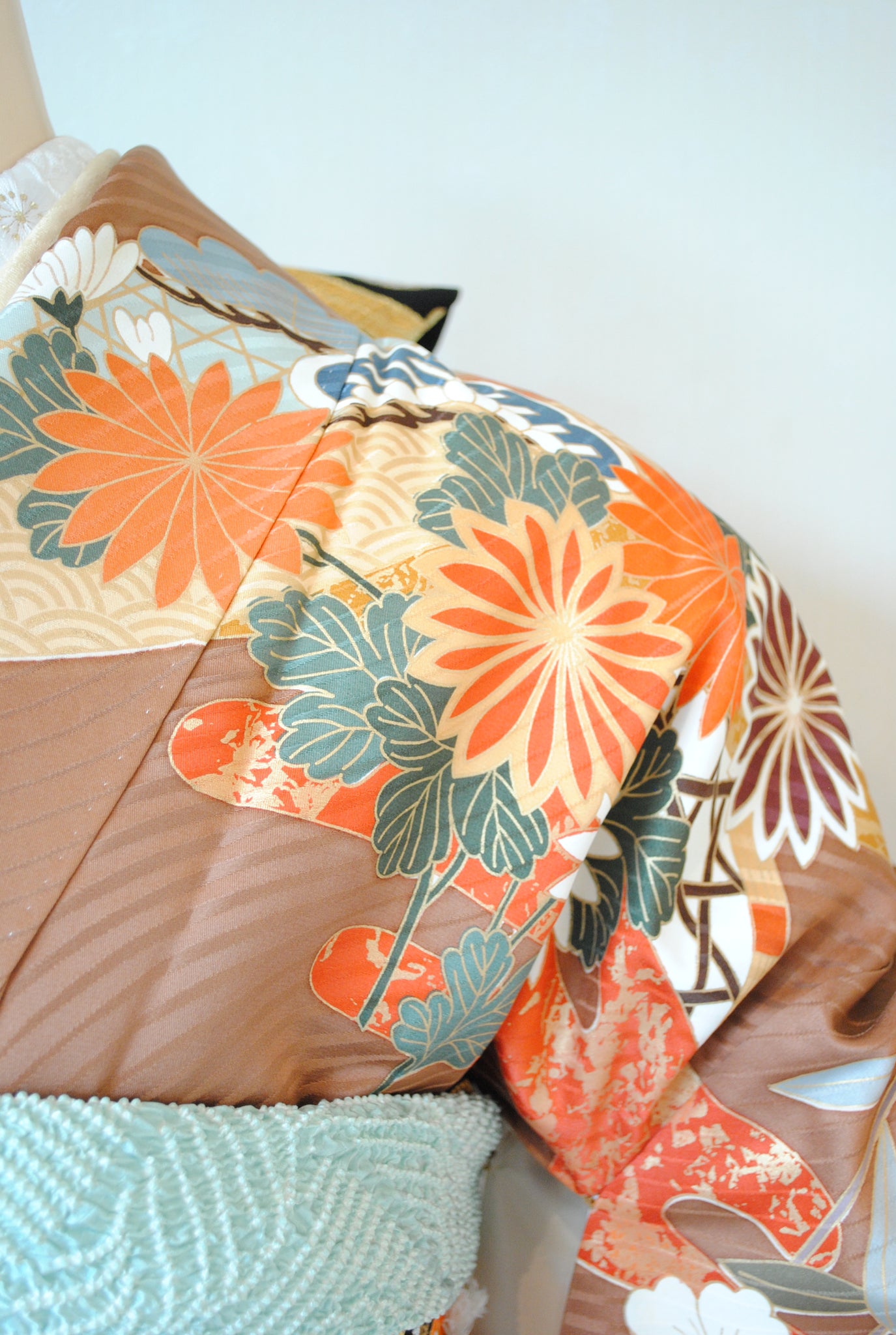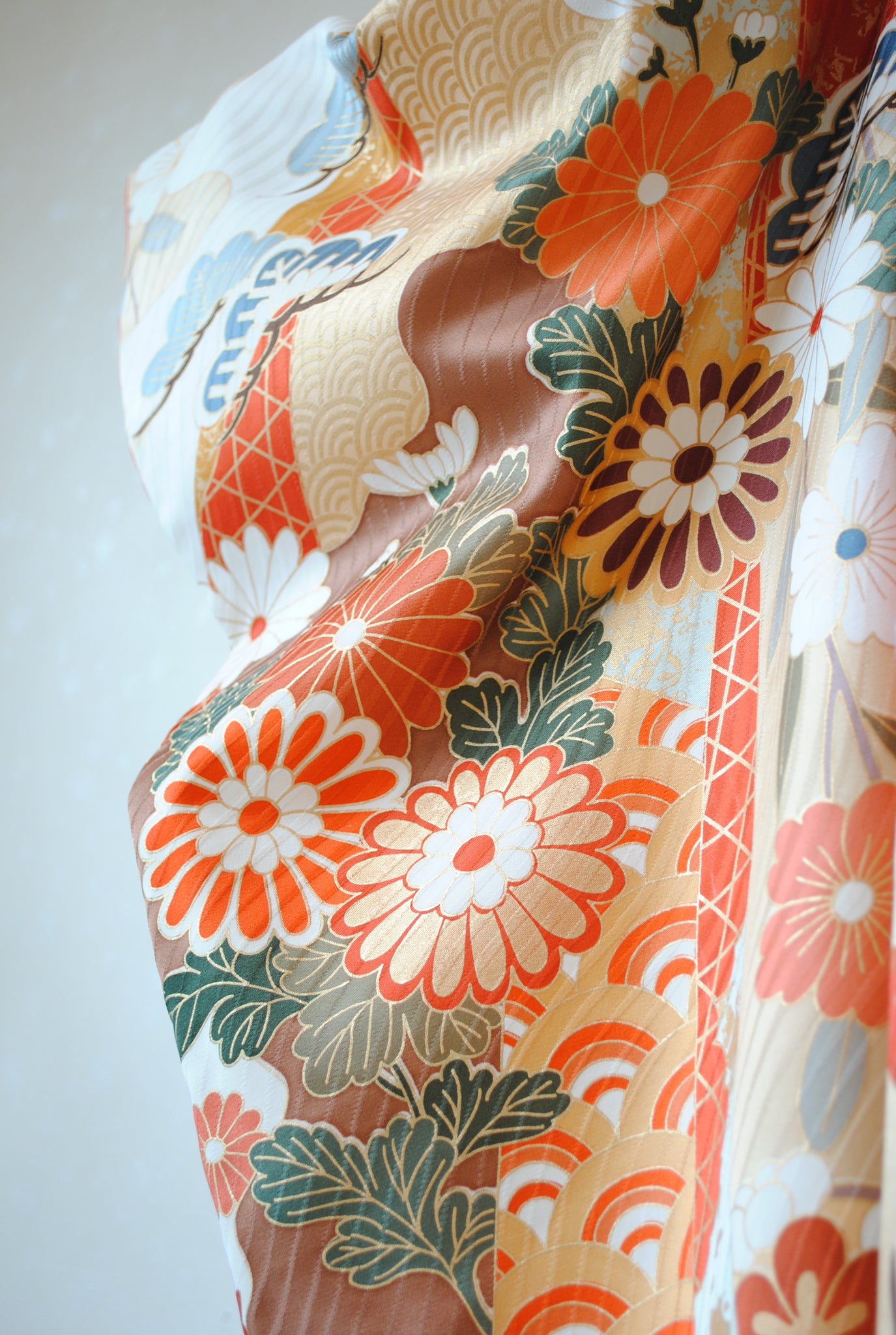 現代的な感性でお洒落に着こなせる一方、正絹ならではの滑らかな質感と奥行きのある艶が、ワンランク上の気品を演出。確かな上質さを感じさせます。