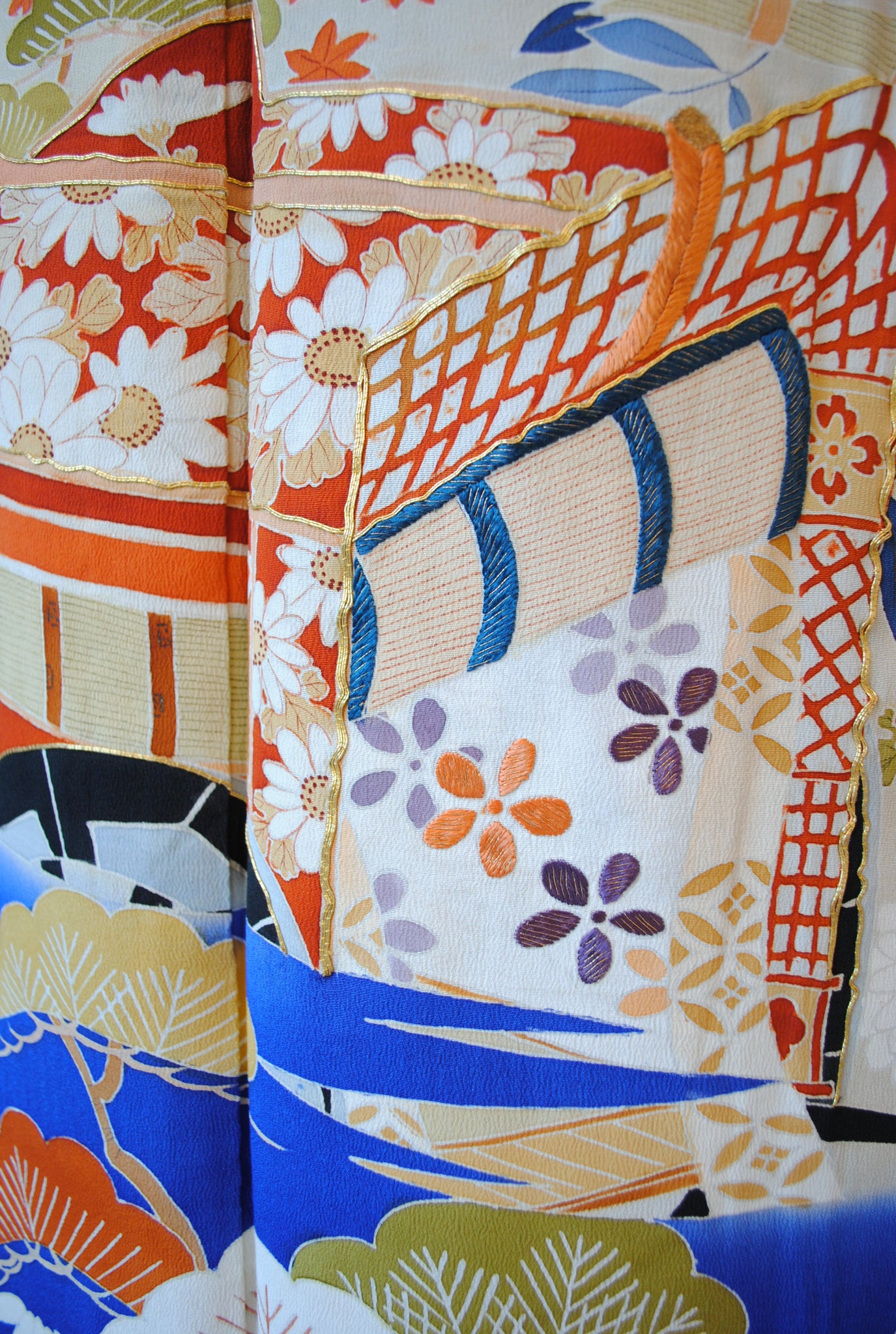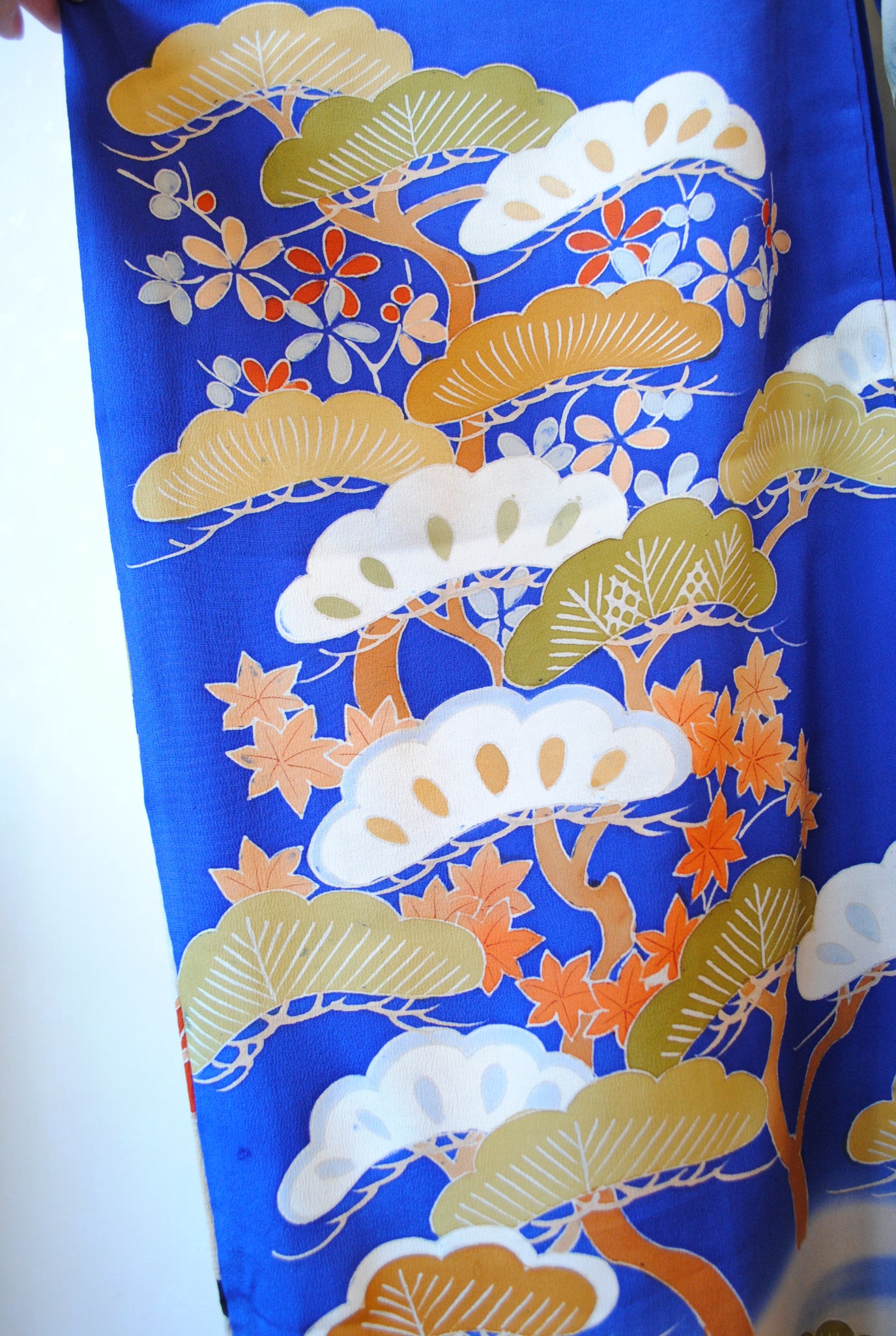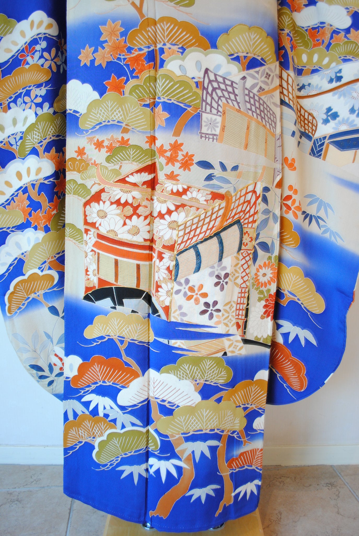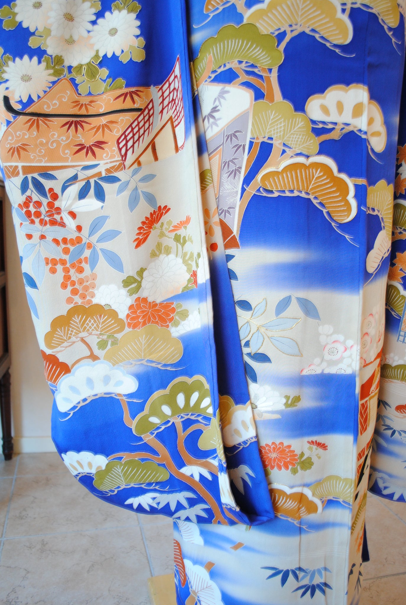 美しい青地に溶け込むぼかしが印象的なアンティーク振袖です。