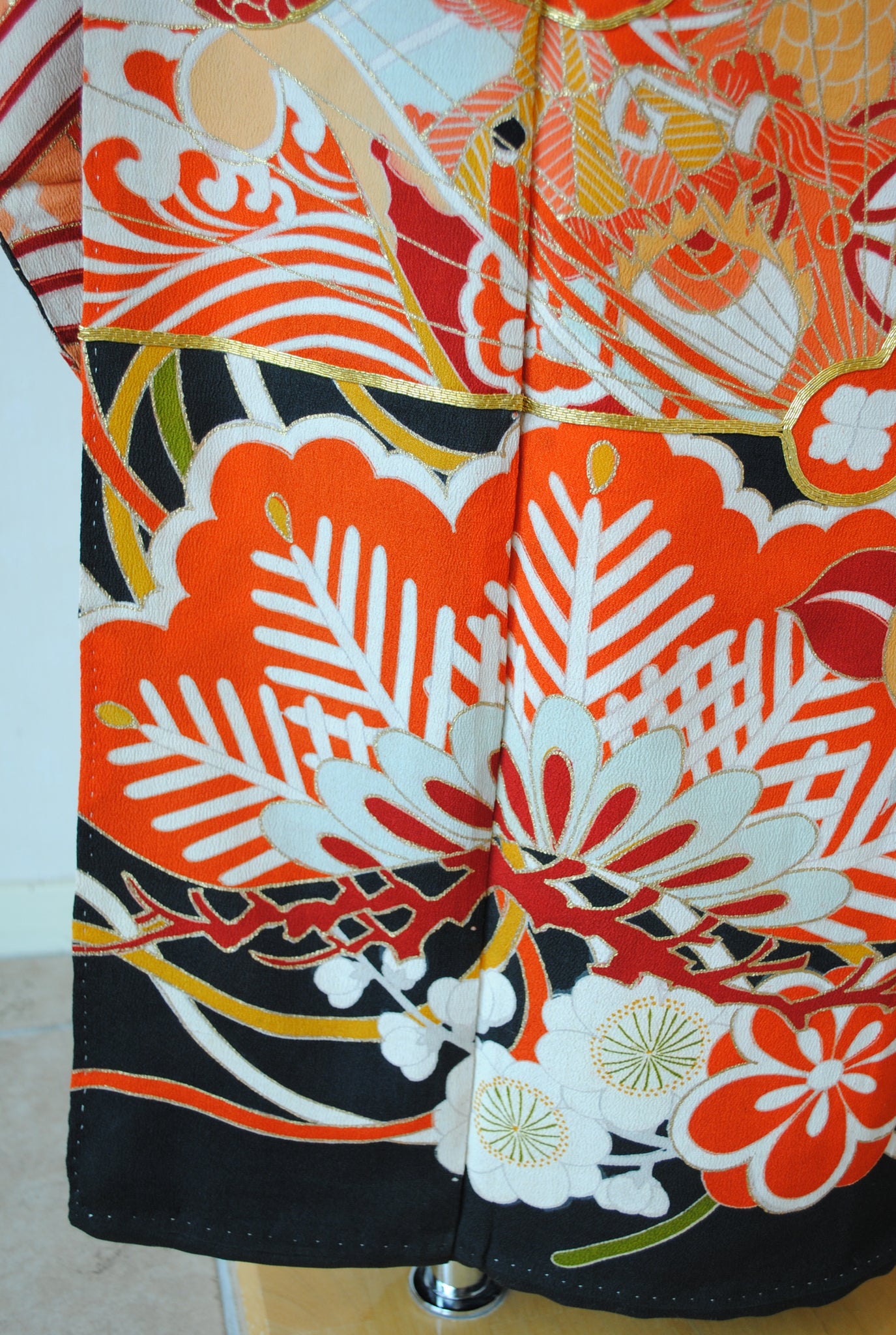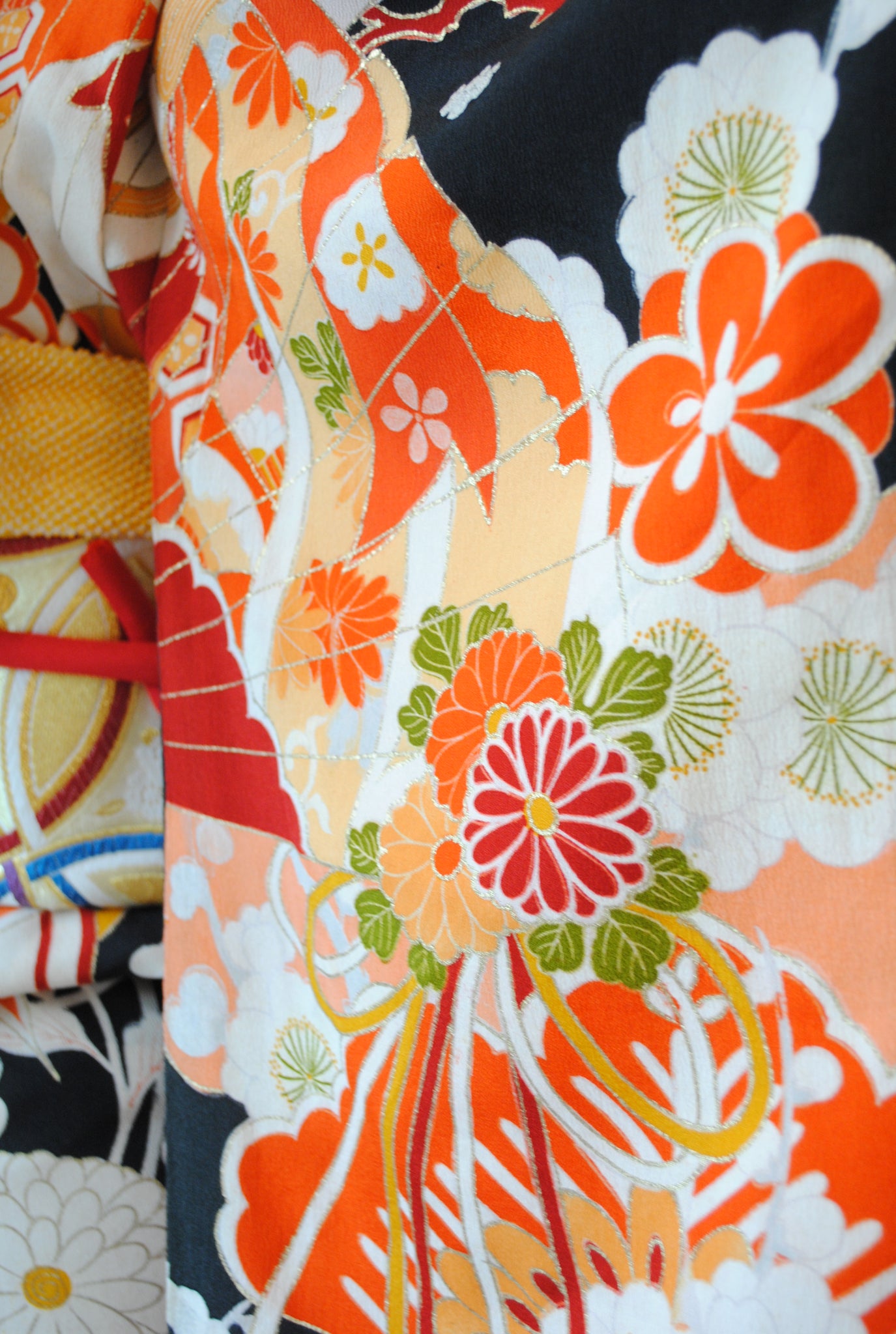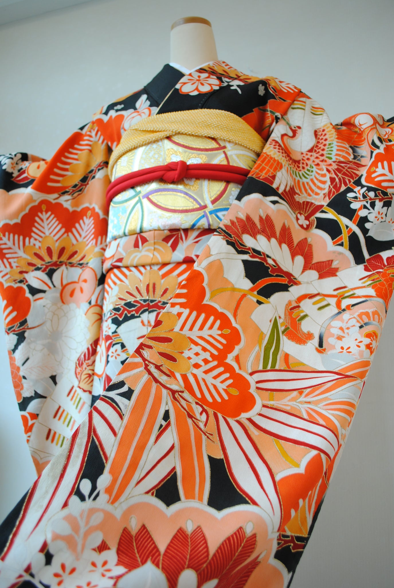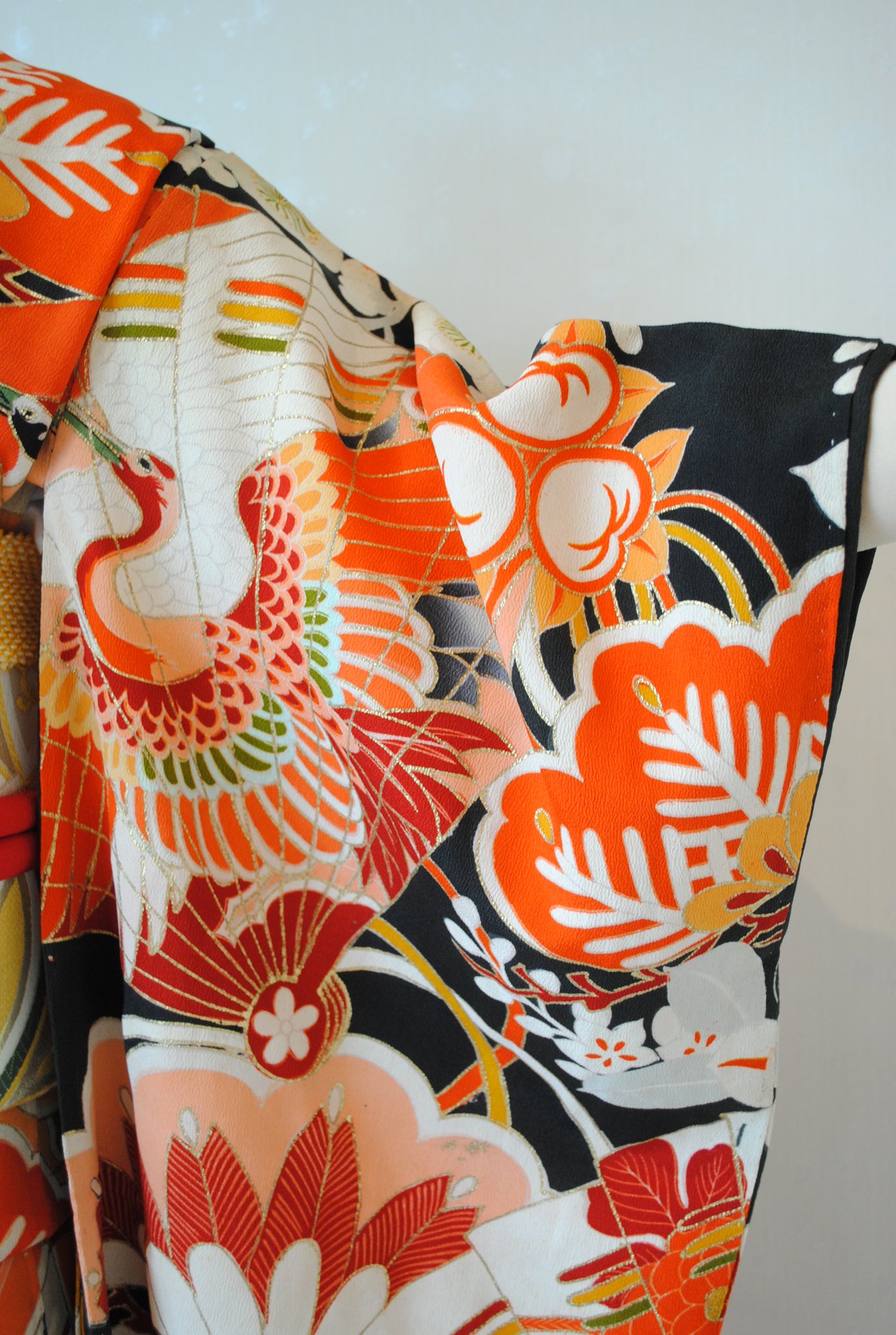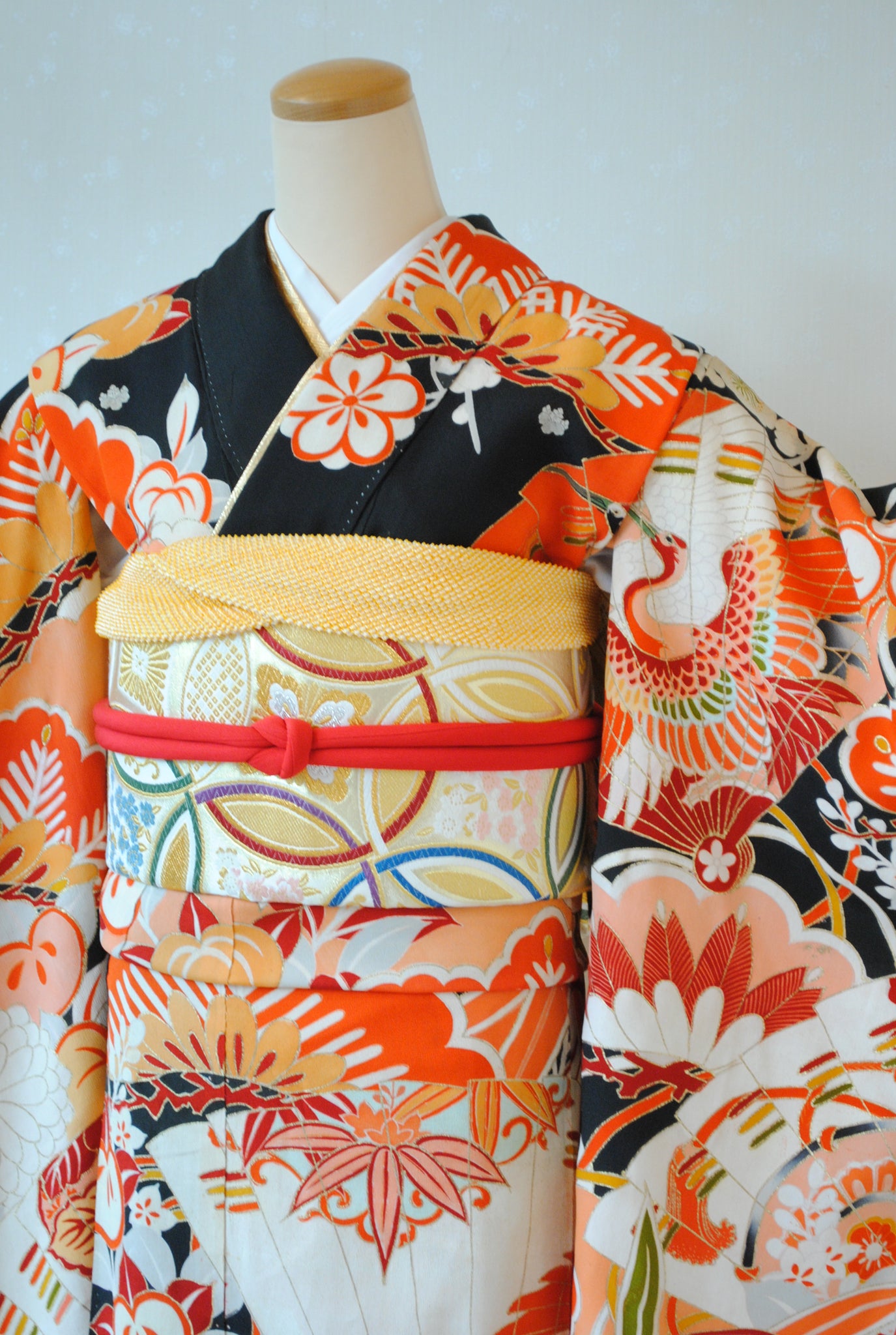時代を経たアンティークの黒振袖の中でも、これほど意匠がはっきりと状態の良く残るものは数多くありません。