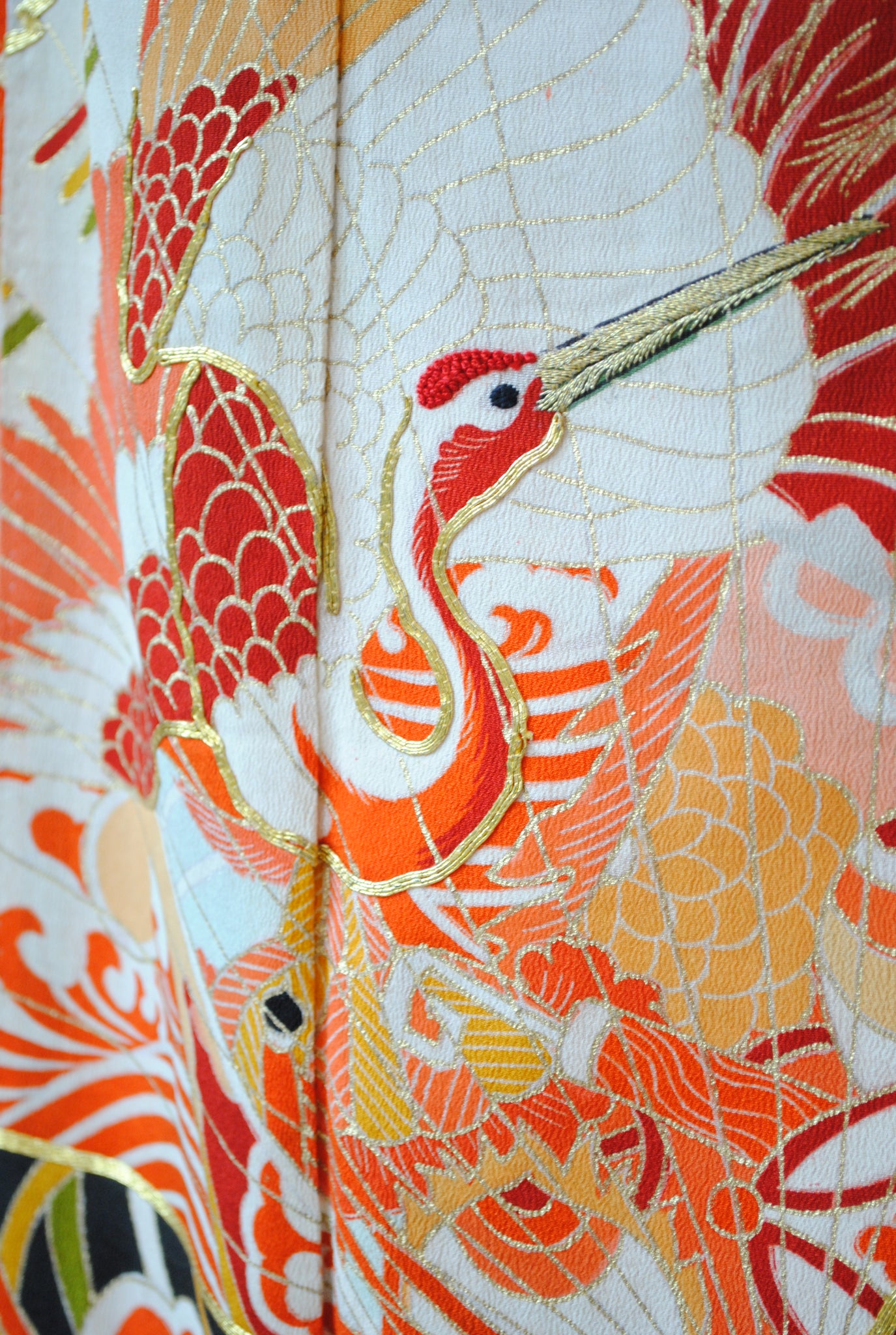 松は変わらぬ強さと長寿を、鶴は未来へ続く慶びと繁栄を、檜扇は古くから晴れの日の装いに用いられてきた、気品と品格を表す意匠です。