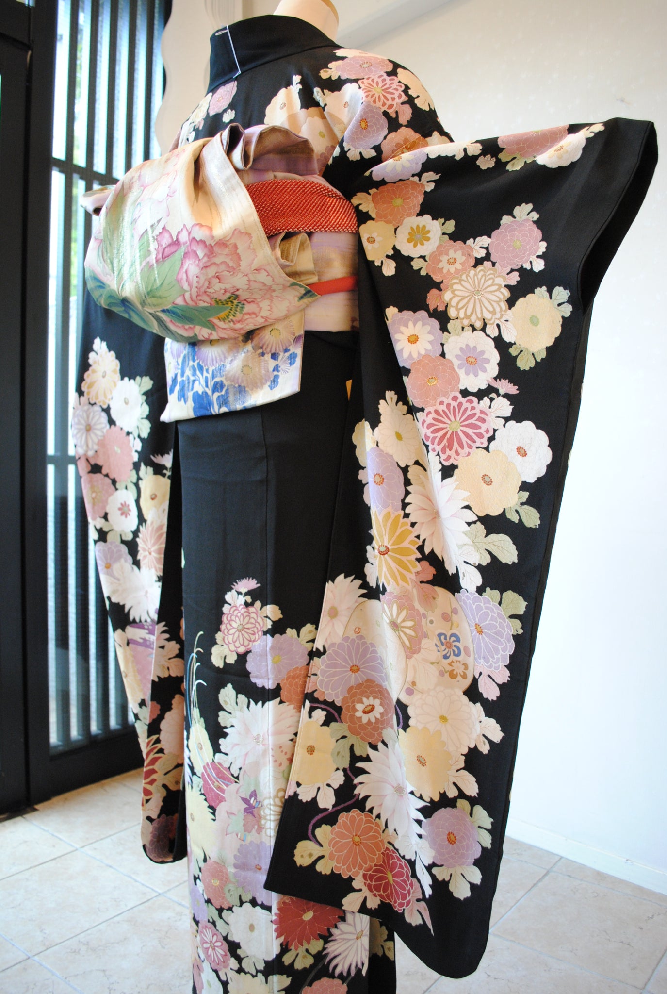 No.24 几帳に菊散らし文様黒振袖